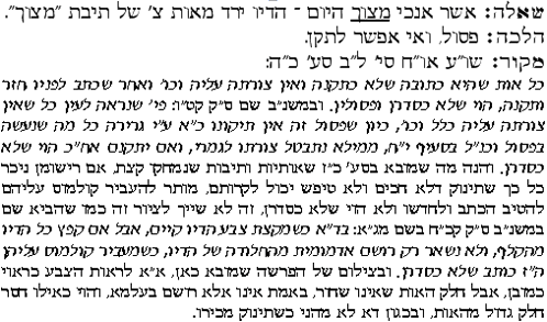 ![]() This is an interesting Shaala which is not so common. The foot of the letter Nun in the word Bivnei is not protruding from the extreme right side on the bottom. This might seem as resembling the letter ”I” of the alphabet. However, a child did read the letter correctly, and it was therefore permited to be fixed. ![]() 25